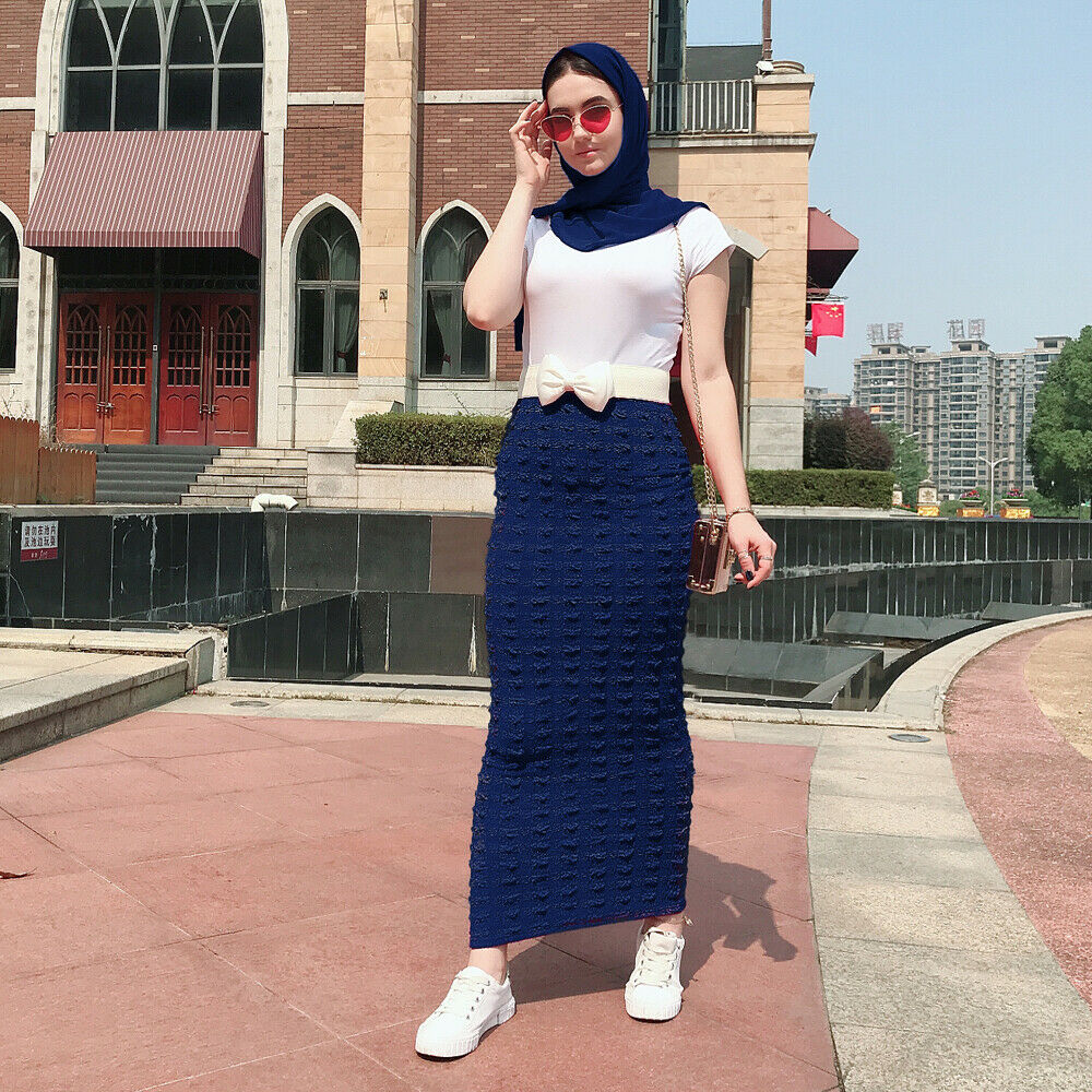Muslim Women Long Bodycon Pencil Skirt Islamic Stretch Spring Evening Cocktail Party Knitting Casual Ladies Maxi Skirt