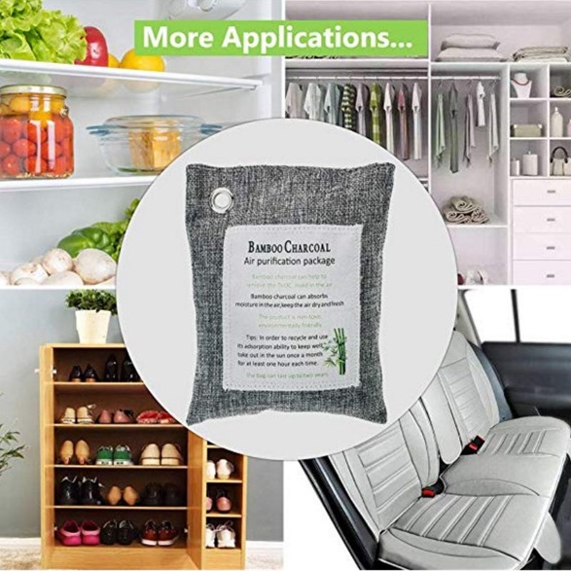Easy to use:Simply place the bamboo charcoal bag in or near environment.Such as living room,kitchen,pet areas,painted walls,car,shoes,shoe deodorizer, gym bags.