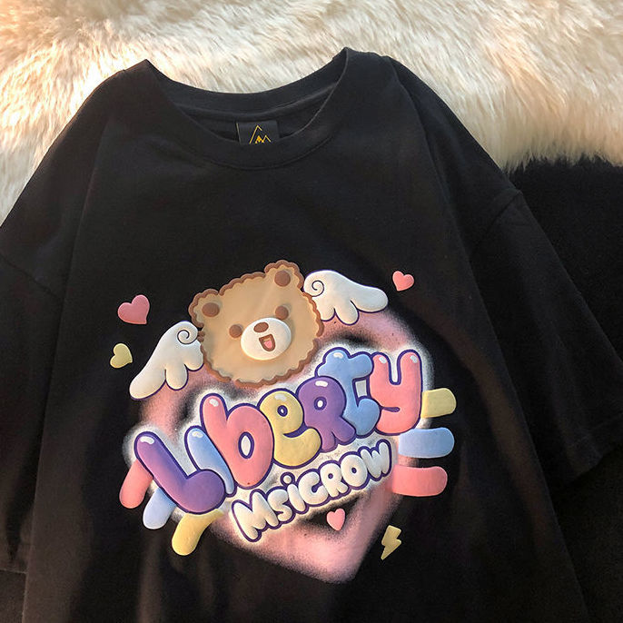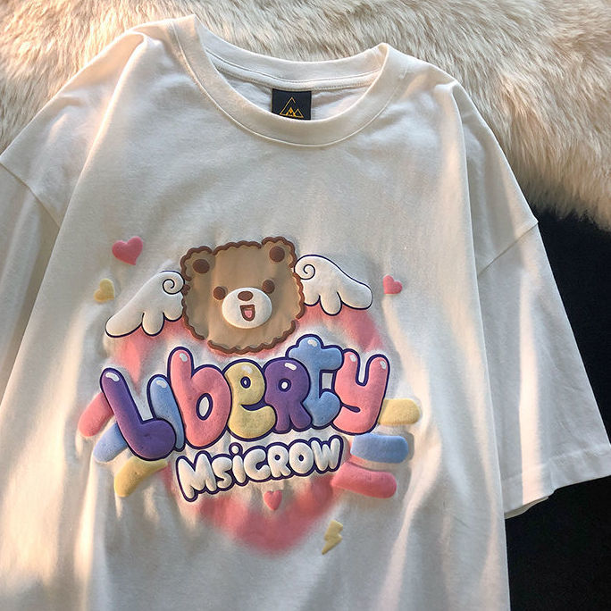 Oversized T Shirt Funny Cute Bear Print Women's T-shirt Harajuku Summer Streetwear Short Sleeve Tops Female Tee Shirt Hip Hop