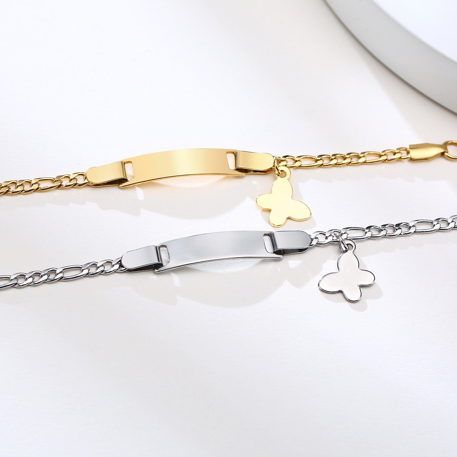 Personalized Butterfly Newborn Baby Bracelet Name Customized Figaro Chain Link Wristbands for Gilrs Boy Children Gifts