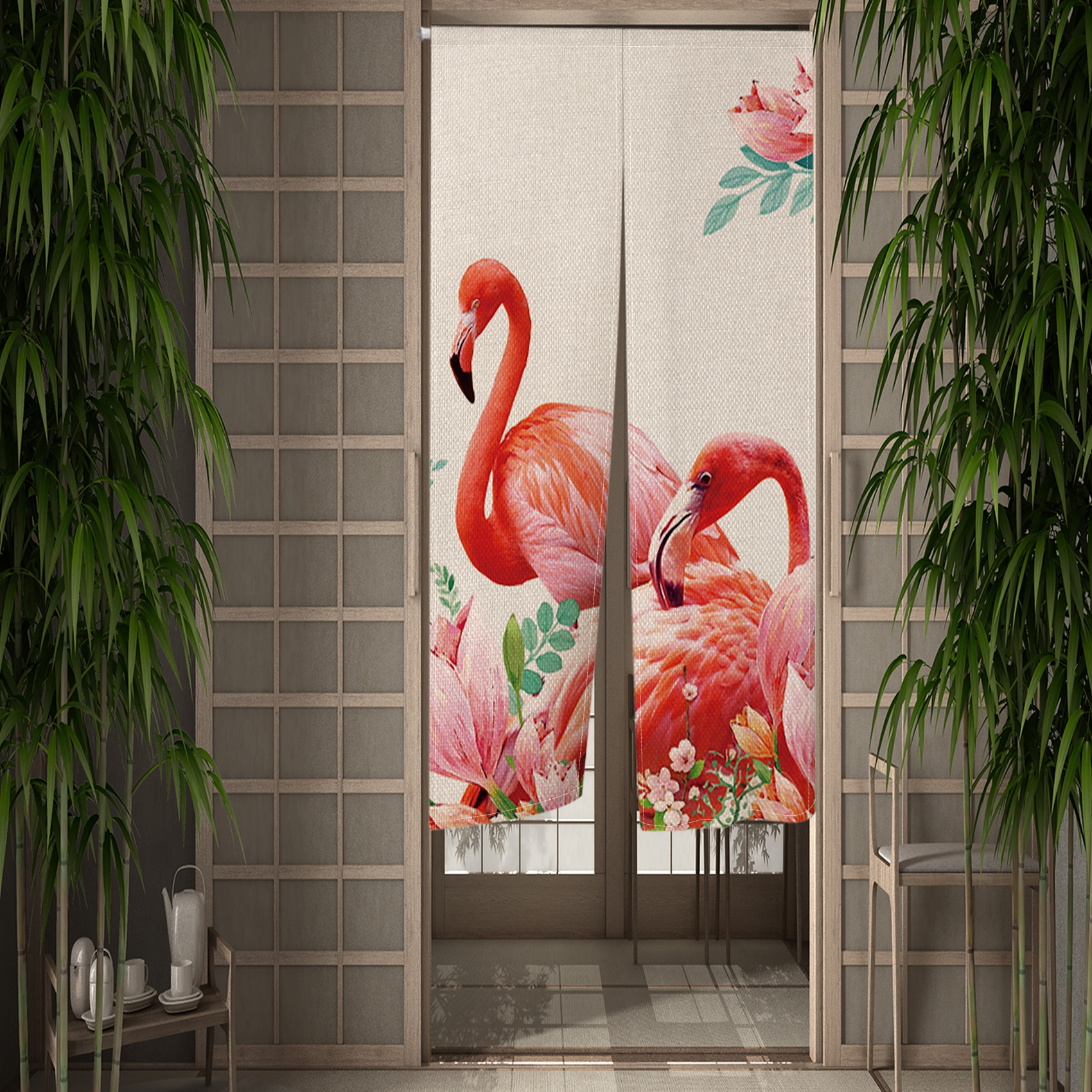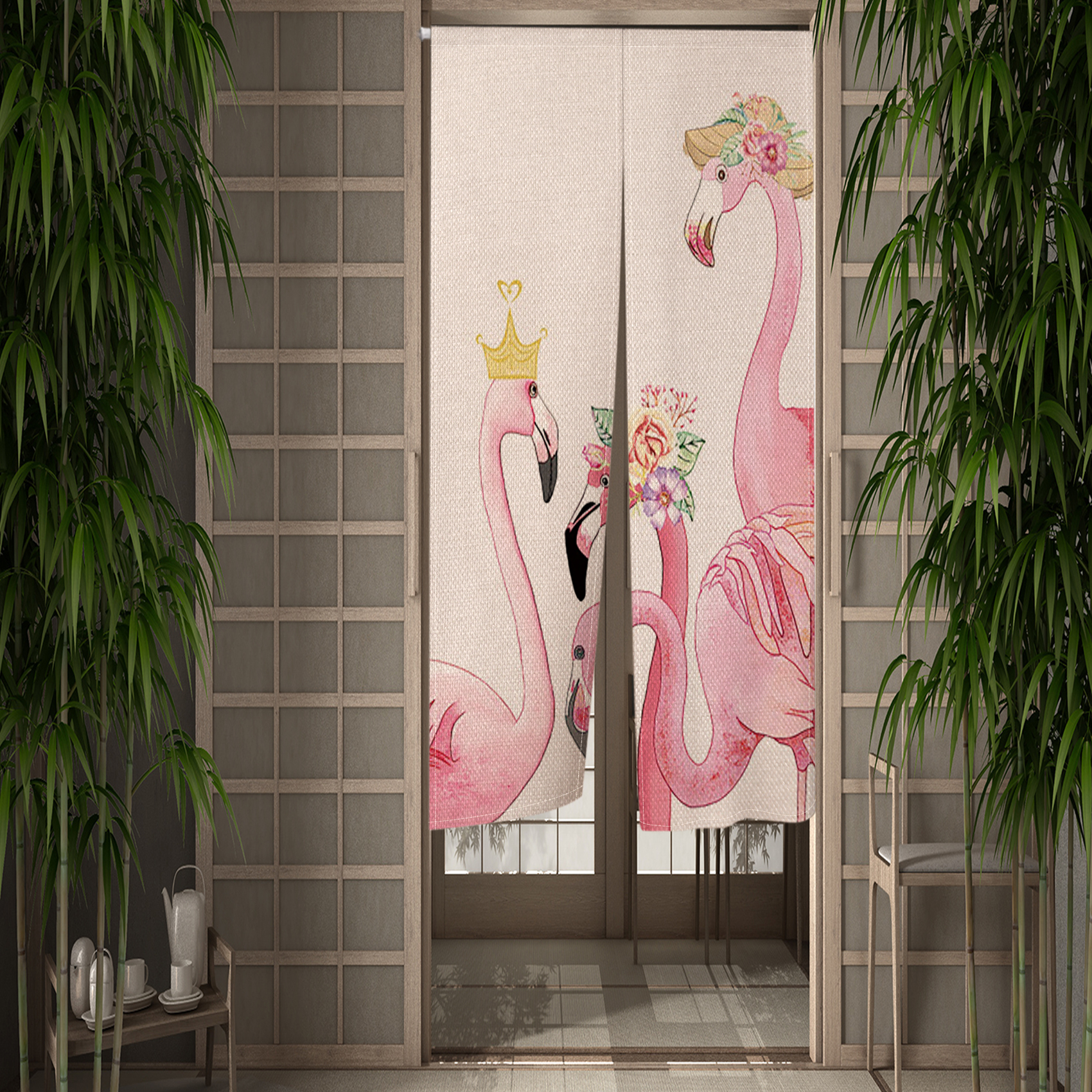 Pink Flamingo Doorway Curtain Creative Flowers Bird Door Curtains Hallway Kitchen Entrance Partition Boho Home Decor