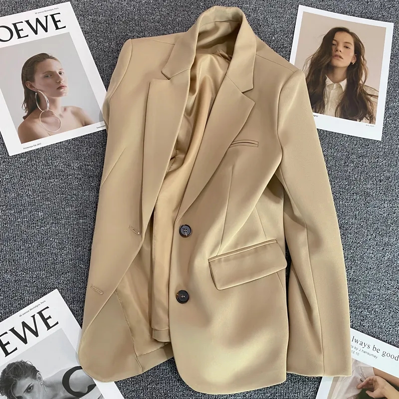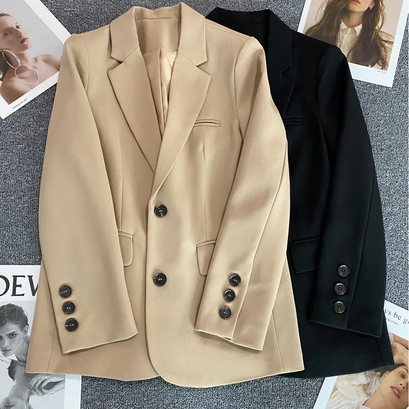 Pink/Khaki/Black Small Blazers For Womens Niche Loose Tops Coats Ladies Spring Autumn Casual Blazer Suit Solid Loose Jacket Coat