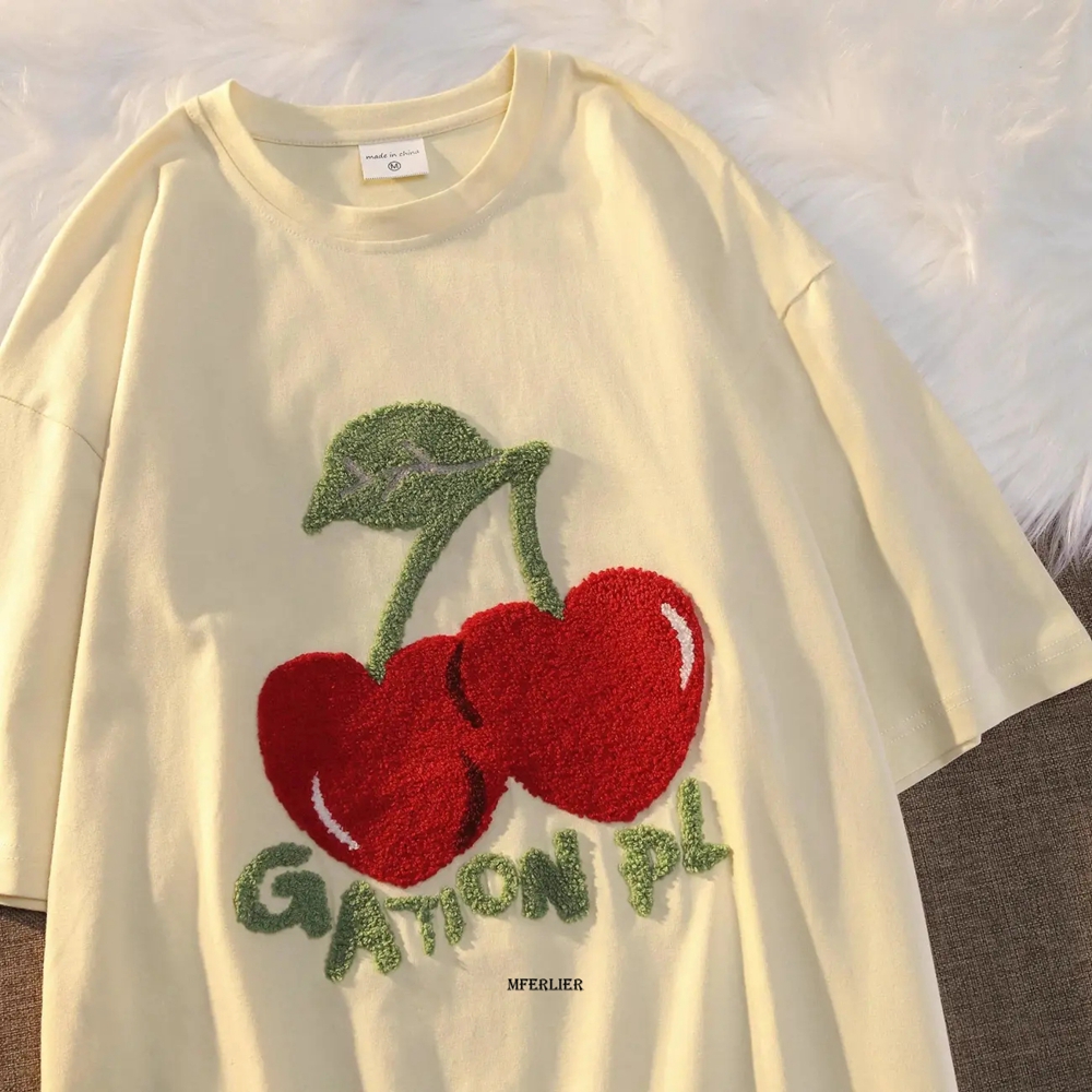 Plus Size 6XL 150KG O Neck Short Sleeve Strawberry T Shirt Women Casual Loose Sweet Ladies T Shirts