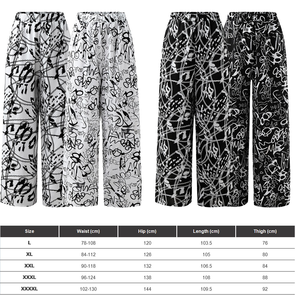 Plus Size Wide Leg Pants Women Spring Autumn Fashion England Style Print Elastic Waist High Street Loose Women's Pants Big Size