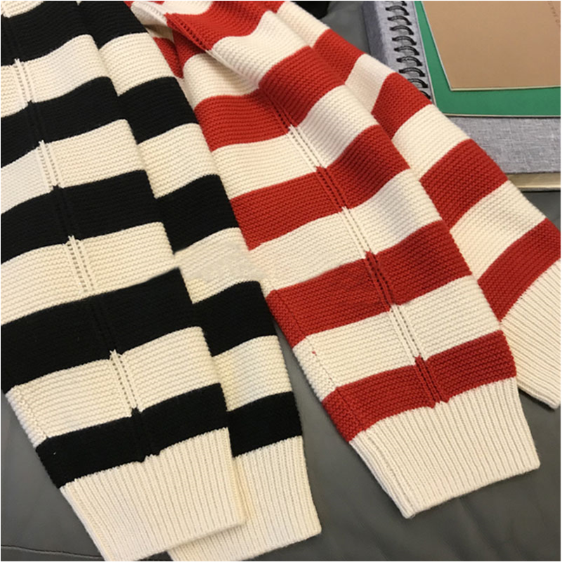 Polo Collar Sweater Women's Autumn And Winter Striped Red Casual Loose Pullover Short Knitted Sweater Long-sleeved Top Y2K