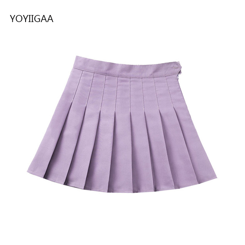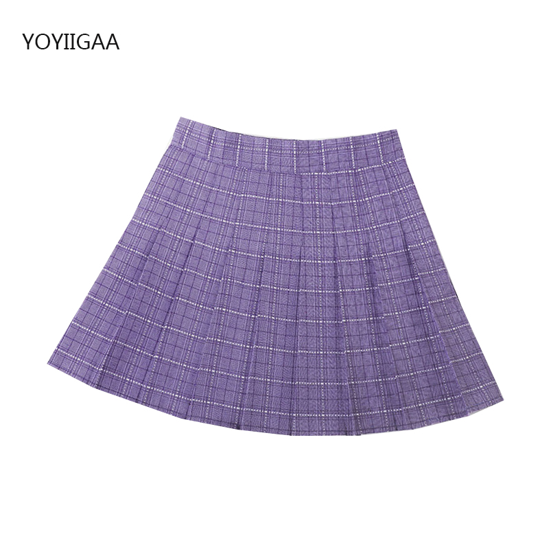 Purple Women Pleated Skirts High Waist Woman Plaid Mini Skirt Preppy Style Casual Female Skirts Sweet A-line Ladies Short Skirt