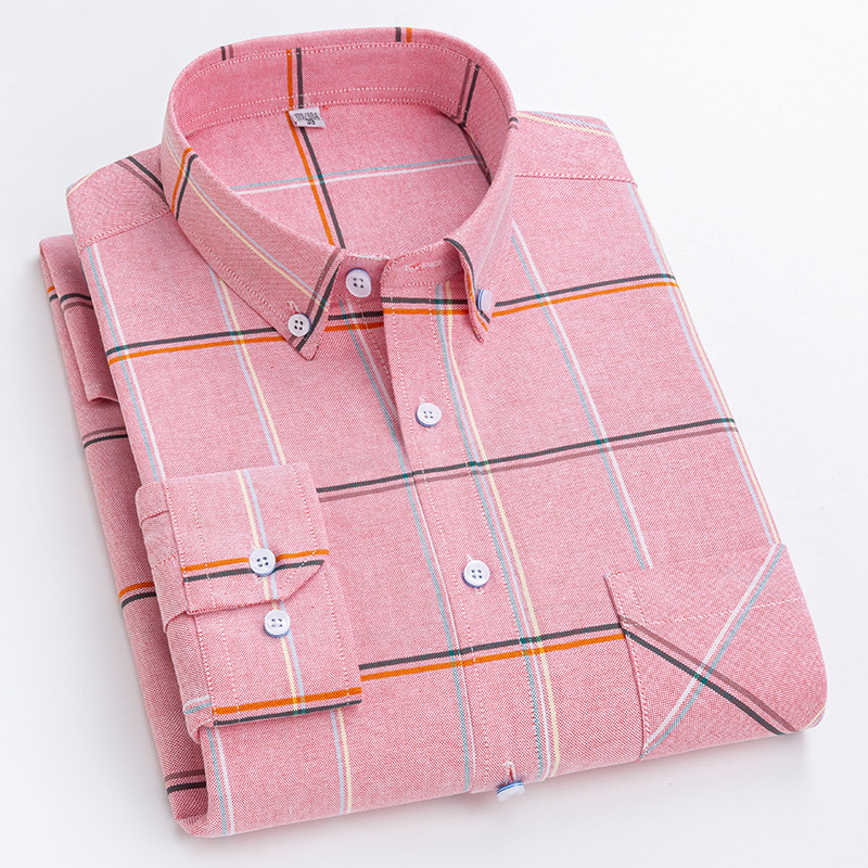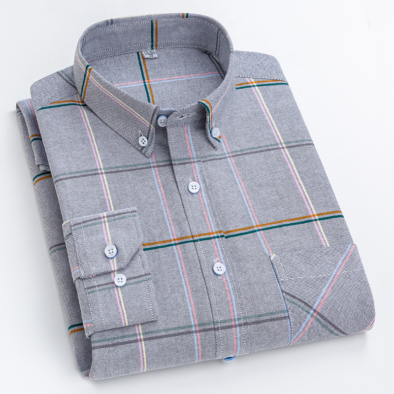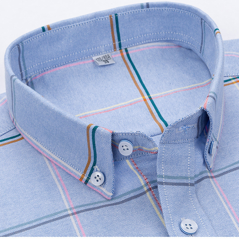S-6XL Mens Oxford Plaid Casual Dress Shirt For Men Long Sleeve Front Patch Chest Pocket Regular-fit Button-down Thick Work Shirt