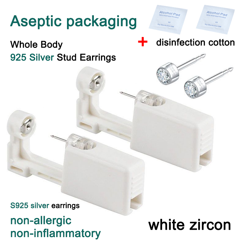 S925 Silver Disposable Sterile Ear Piercing Painless Piercer Aseptic Packaging, Hygienic, Anti-infection, Anti-inflammatory