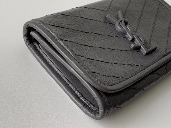 Inspired by the iconic Niki handbag, the Saint Laurent’s Niki large wallet in supple glossed-leather that’s crinkled to look somewhat vintage combines a functional design with fashion appeal. It’s embroidered with chevrons and decorated with iconic ‘YSL’ hardware. Sensorial yet functional, it is still large enough to fit all your daily essentials.