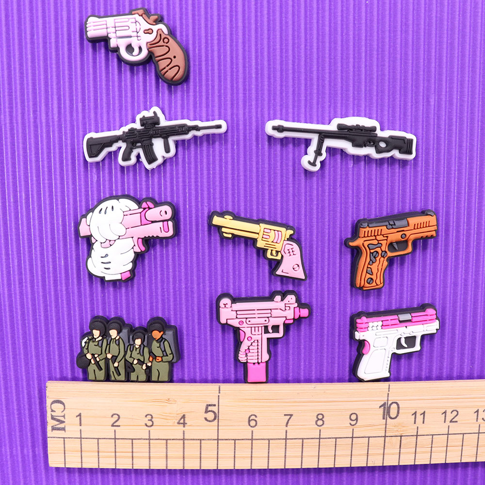 Sales 1pcs Soldier Gun Shoes Accessories Man Garden Sandals Buckle Decorations Fit Croc Jibz Charm Party Gift