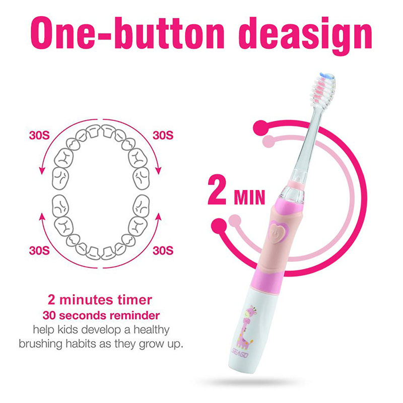 2.Seago's second electric toothbrush is designed for children! Our children's electric toothbrush can clean up to 24,000 times per minute, effectively eliminating tartar.Gentle vibrations can remove more plaque than a traditional manual toothbrush.