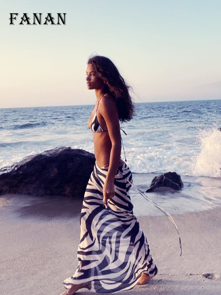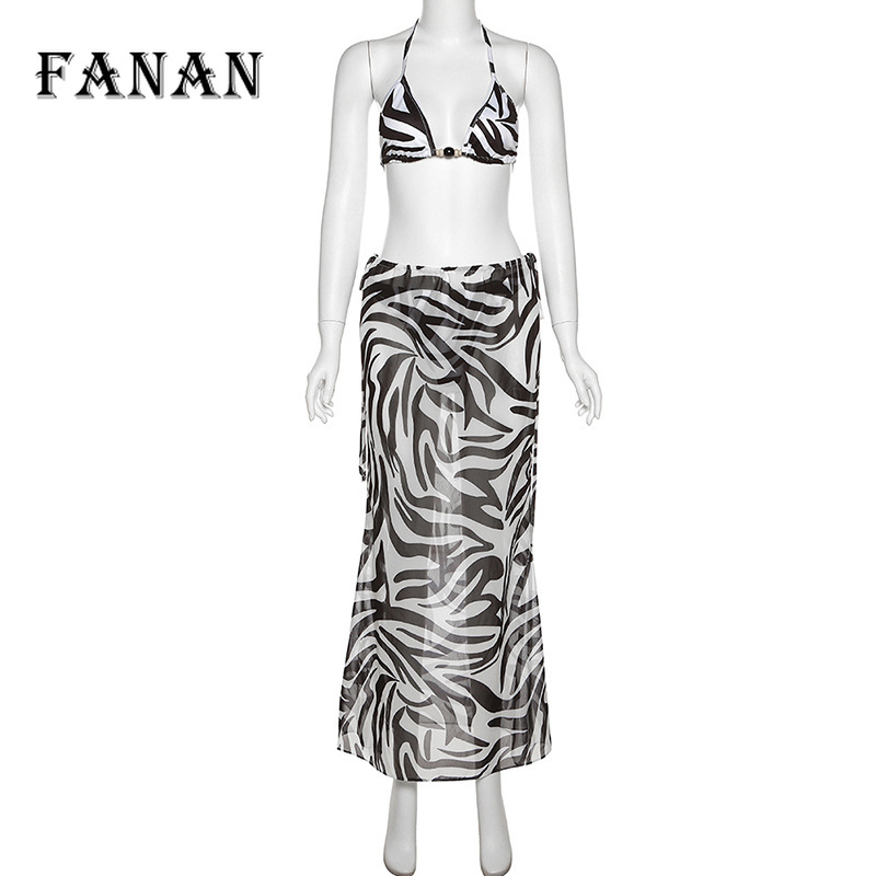Sexy Two Piece Set Women Outifits Summer Zebra Print Crop Top And Maxi Skirt Set Vacation Pool Beach Dress Set Suit