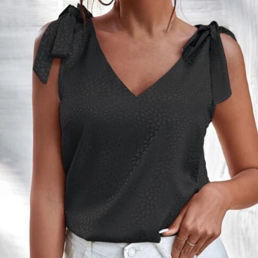 Sexy Women's Blouses Solid Color V Neck Sleeveless Bow Tie Strap Lacing Off Shoulder Bandage Summer Pullover Vest Top Streetwear