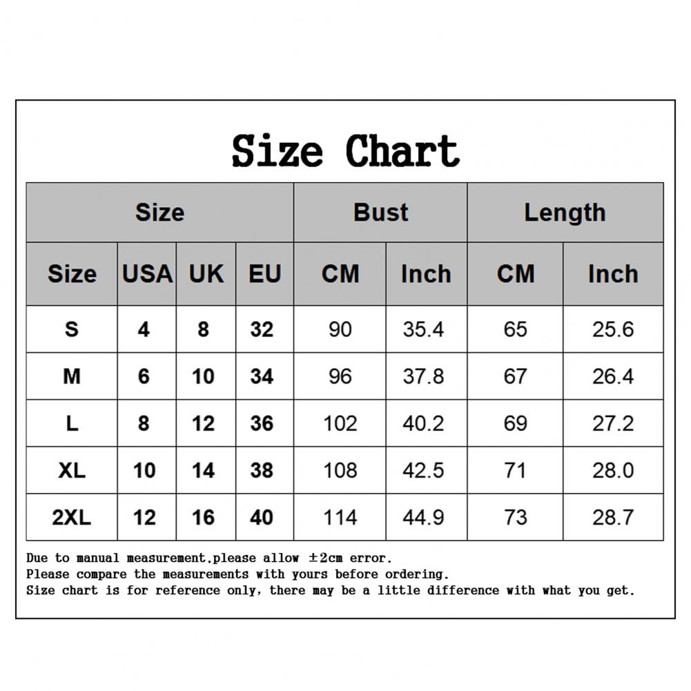 Size: 2XL, Bust: 114cm/44.9", Length: 73cm/28.7" (Approx.)