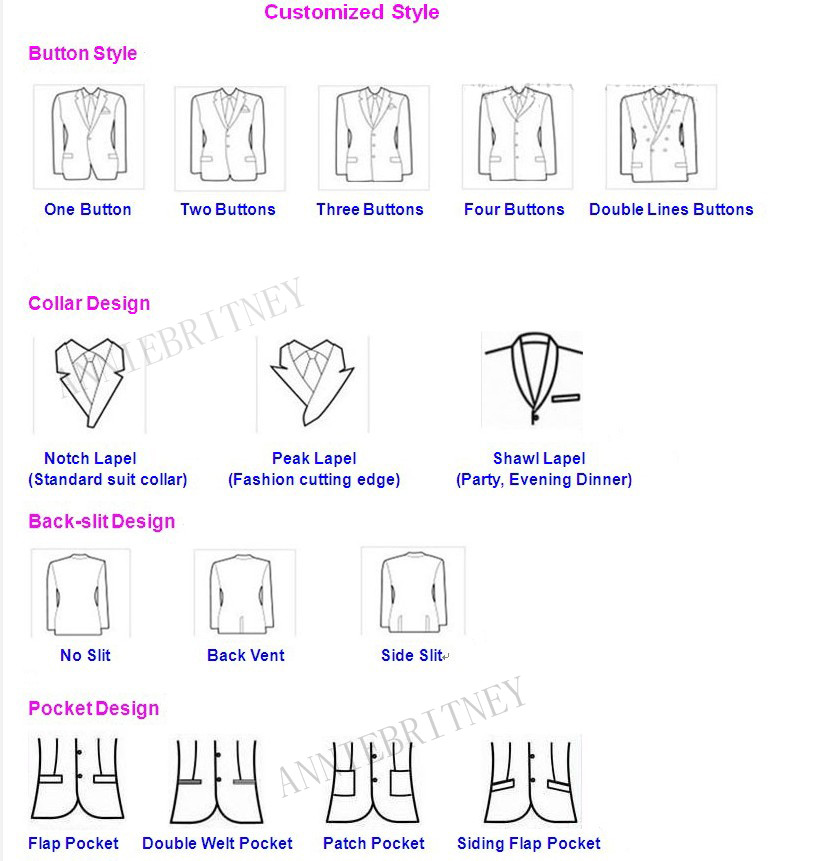 • Please ensure all details(size/color and so on) in 24 hours after you made the order, limited by the handing time of website, we can’t change it after suits start working.