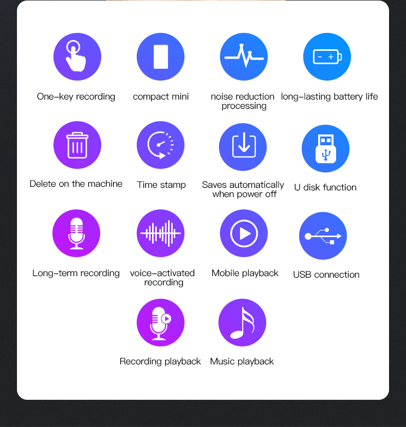 Digital Voice Recorders that are compact and pocket sized, unobtrusive and simple to operate Clear Voice RecordingYou can use it as a portable audio recorder to record anything, or simply use it as a MP3 player to listen to your favorite songs.Straightforward operation – Features auto save so your recordings are saved instantly, when the earphones are plugged in, it automatically enters playback mode and you can review your file.