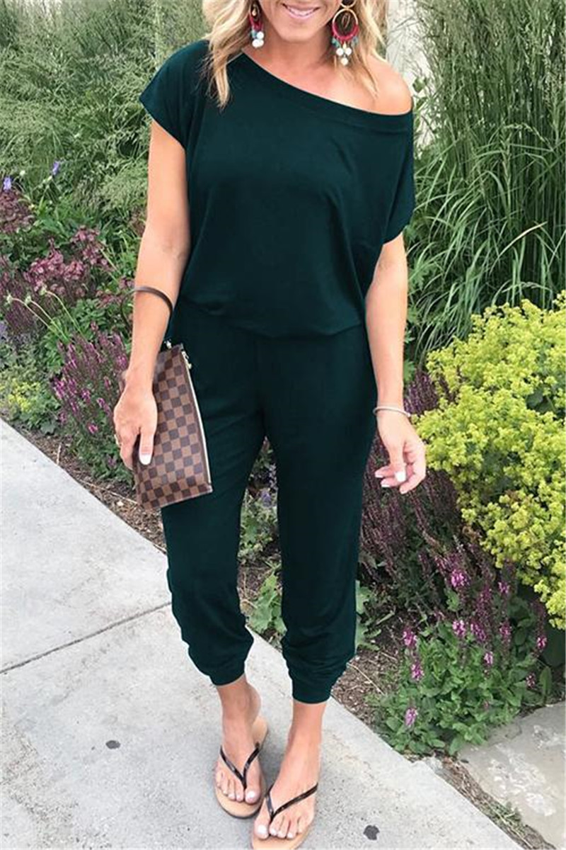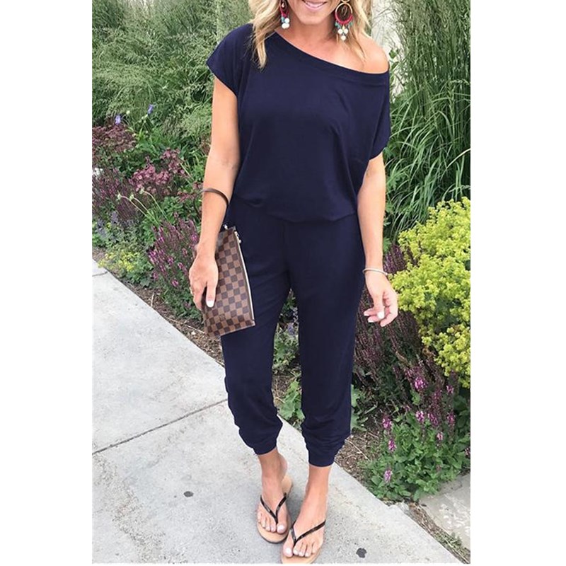 Solid Casual Sexy Off Shoulder Short Sleeve Jumpsuits Arrival Women Summer Slim Elegant Long Rompers Female XL