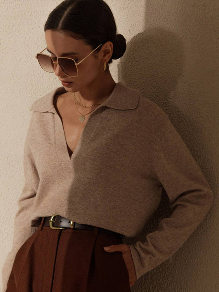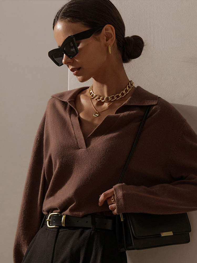 Model Number : Solid Lapel Women Long Sleeve Knitted Pullover