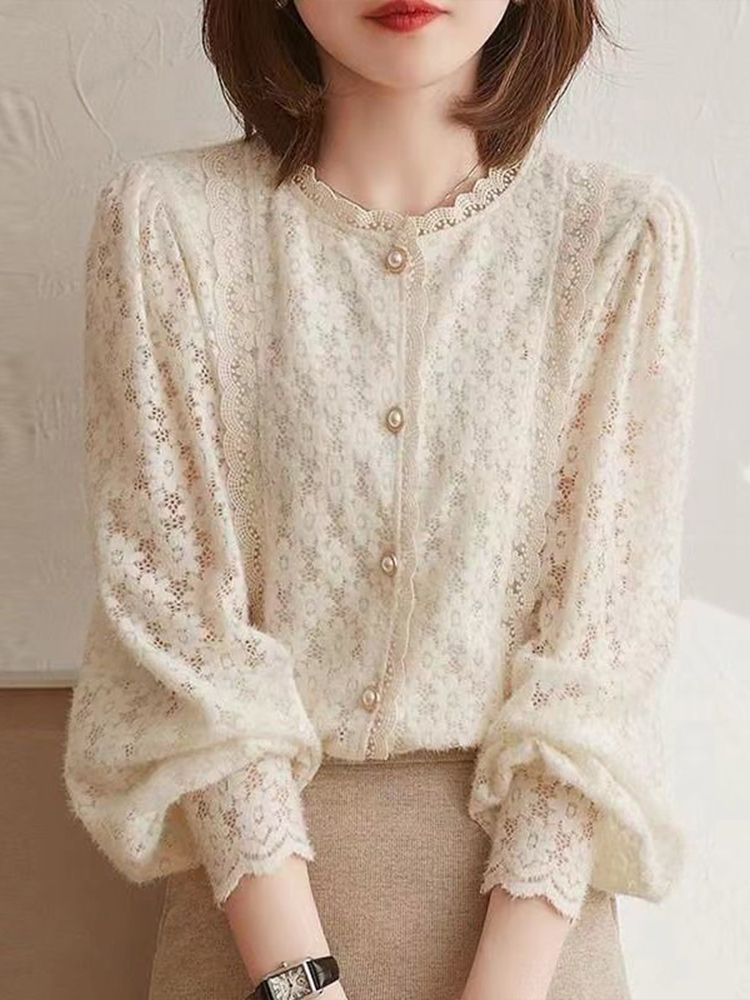 Spring Autumn Solid Flower Elegant Embroidery Tops Women Long Sleeve Aesthetic Lady Shirt All Match Casual Chic Pullover