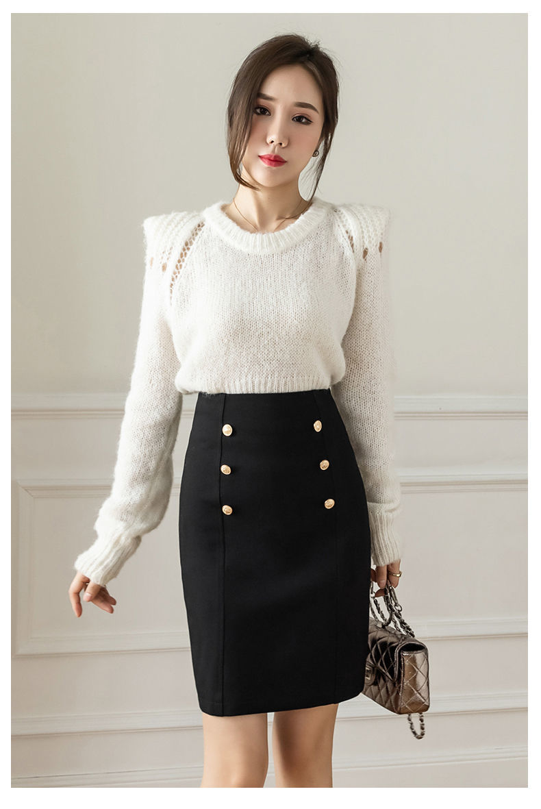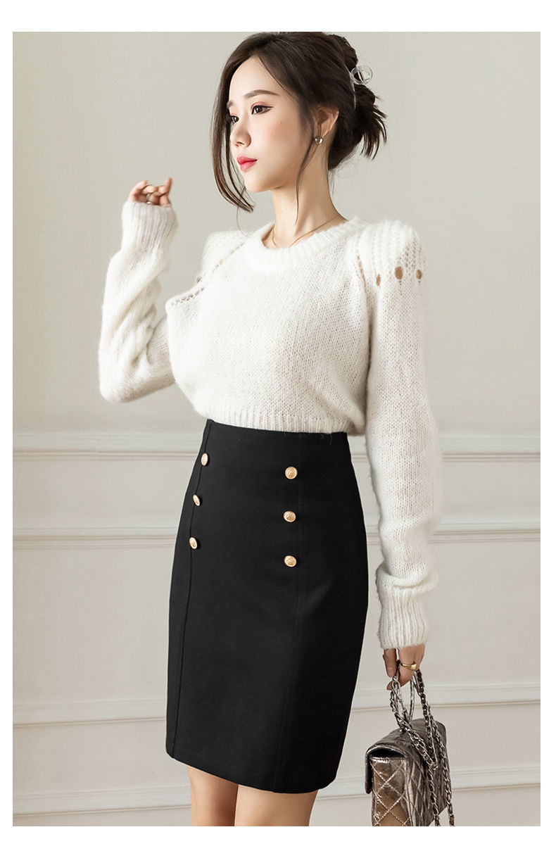 Style Skirts for Woman Button Vintage Solid Work Wear Pencil Skirt Lady Office Business Black Skirt