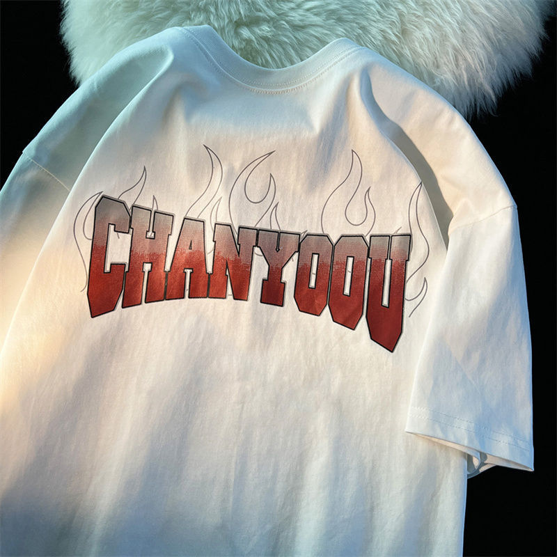 Summer American flame cross short sleeved t-shirt men loose ins street style half sleeve top y2k top harajuku women clothes