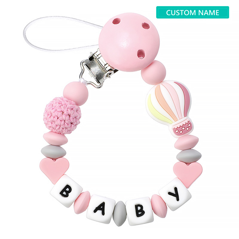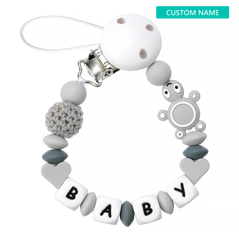 TYRY.HU Baby Pacifier Clip Chain Personalized Name Dummy Holder Silicone Teething Beads with Cute Turtle balloon Soother Chains