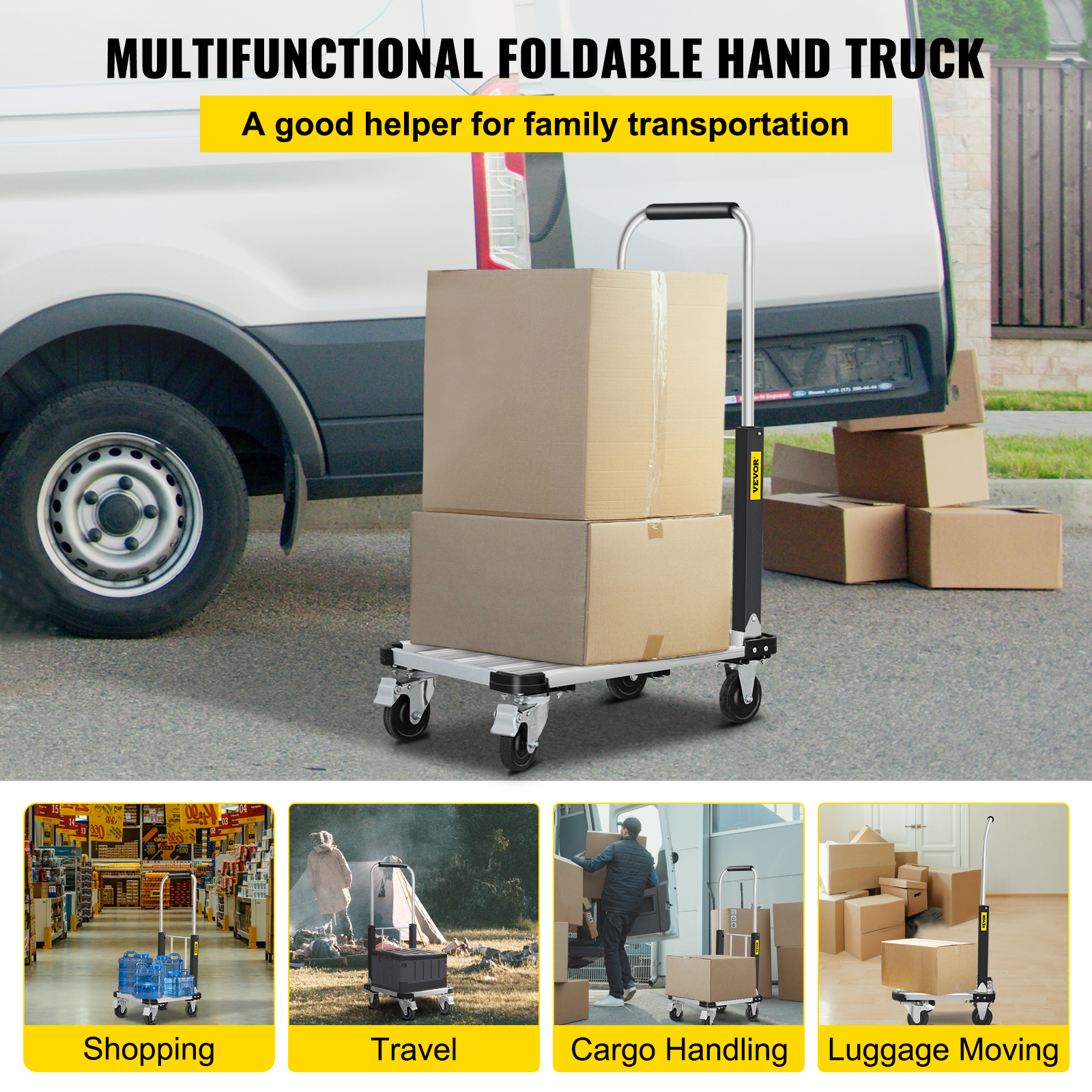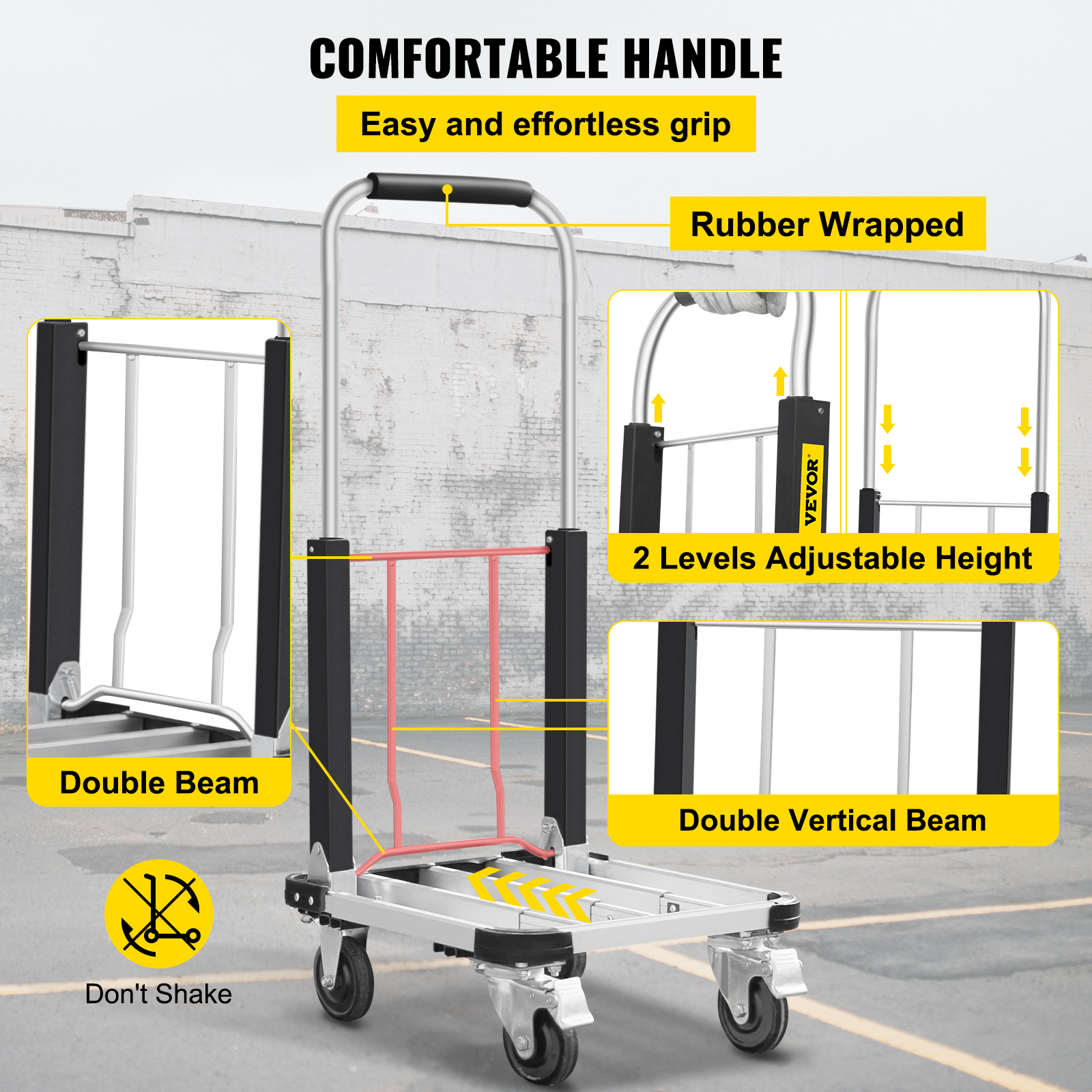 VEVOR Folding Hand Truck Dolly Cart with Wheels Luggage Trolley 330lb Capacity Solid Construction Aluminum Alloy Flatform Dolly