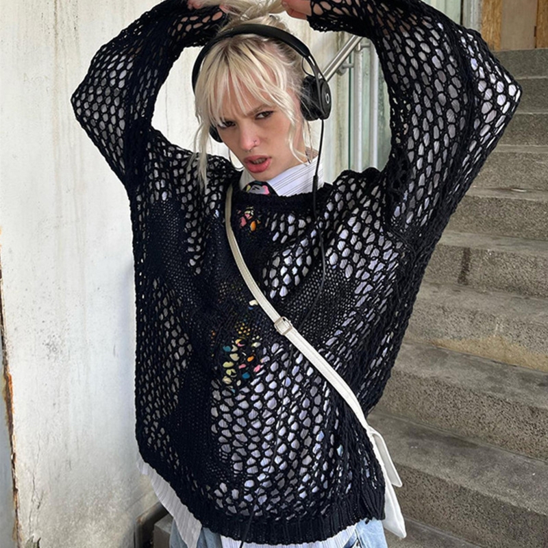 The stylish hollow knit pullovers gives a playful feeling, looks more young and energetic.