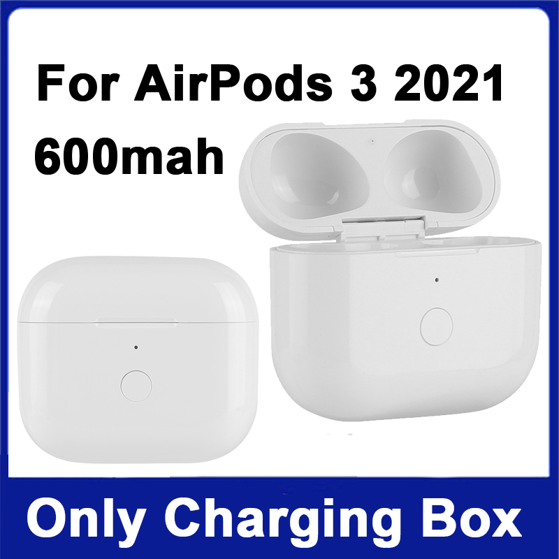 600mAh Earphones Charging Box for AirPods 3 2021 Earbuds Wireless Bluetooth-compatible Headphones Replacement Charging Case Accessories Feature: New upgrade: Perfect for AirPods 3, the battery indicator LED light makes the battery status visible in real time. High-quality replacement: 600mAh built-in battery capacity, a full charge in the charging case is enough to charge for AirPods 3 3-4 times. Charging and Pairing: With a responsive Bluetooth-compatible button. Not only can it charge the earphones, but it can also pair the earphones with for iPhone or Android phone. Support wireless charging, support flip pop-up window, support Bluetooth-compatible pairing Precise Design: Ports are easily accessible without removing the case and reserve the location for the charging hole. LED battery indicator can be seen while charging. Provides enough power to your earphones for normal use Portable: The charging case is small and exquisite, with a charging cable, it is convenient to charge in the office, home, car or travel. Lightweight design for easy portability. QUALITY AND SAFETY: Made of eco-friendly ABS, dustproof and scratch-resistant; built-in chip protects your device from short circuit, overvoltage, overcurrent and overcharge