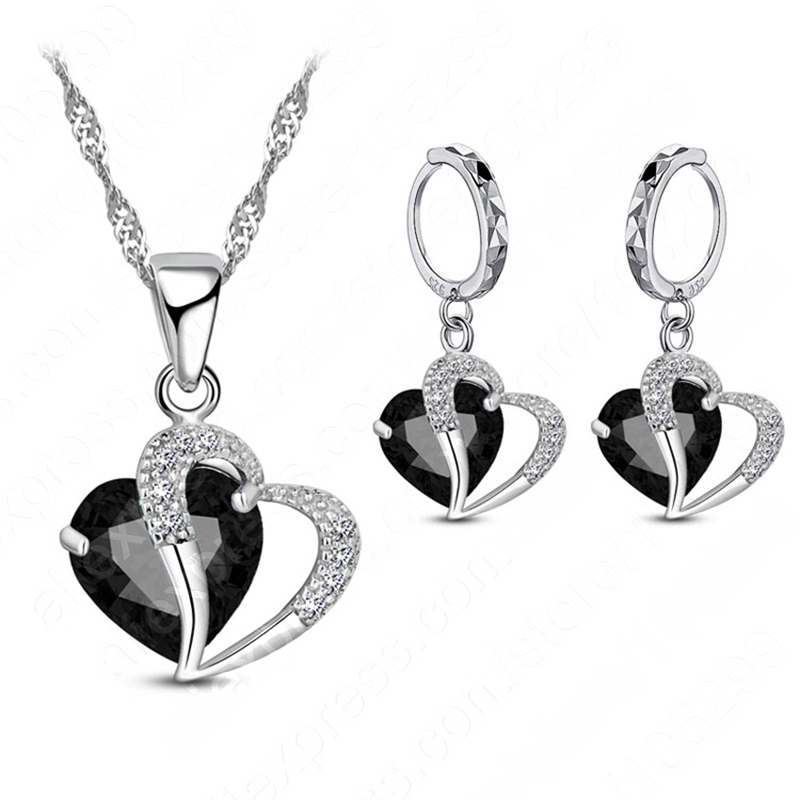Women 925 Sterling Silver Cubic Zircon Necklace Pendant Earrings Sets Cartilage Piercing Jewelry Wedding Heart Design