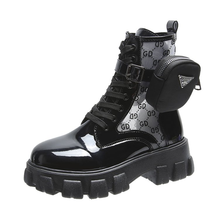 Women Thick-Soled Leather Boots Casual Women Boots Women Lace-Up High Boots Nylon pouch heels flats booties