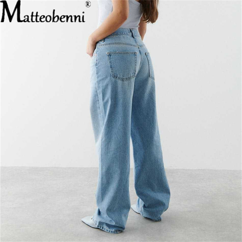 Women Wide Leg Jeans Blue Loose Denim Trousers Ladies High Waist Casual Straight Pants Boyfriend Mom Jeans Streetwear
