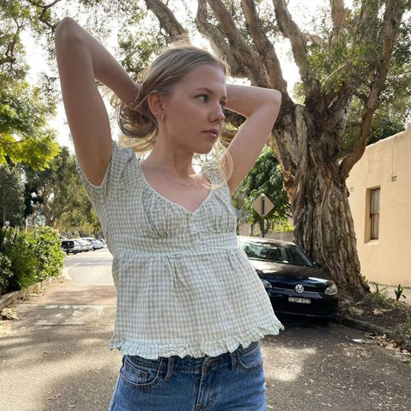 Xingqing Ruffle Top Buttons y2k Kawaii Women Crop Tops Cute E-girl Short Sleeve Tshirt Sweet Fairy Core Clothes Summer Vest