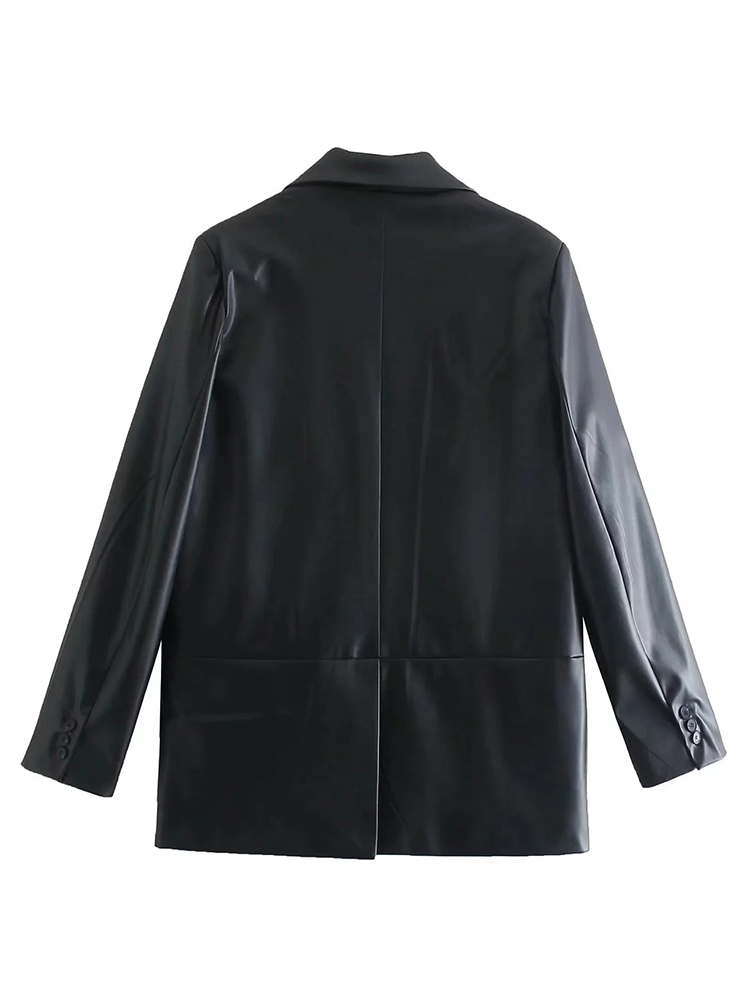 ZACK RAIN Women Faux Leather Black Suit Jacket 2022 Fall/Winter Commuter Ladies Blazer Office Party Loose Female Chic Outwear