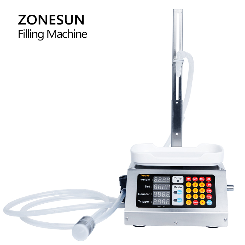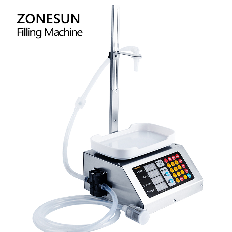 ZONESUN 2 in 1 Electric Small Liquid Weighing Filling Machine Water Juice Milk Plastic Bottle Quantitative Filler