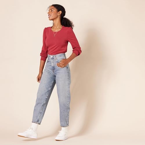 Amazon Essentials Women's Long-Sleeve Crewneck Smocked Cuff T-Shirt