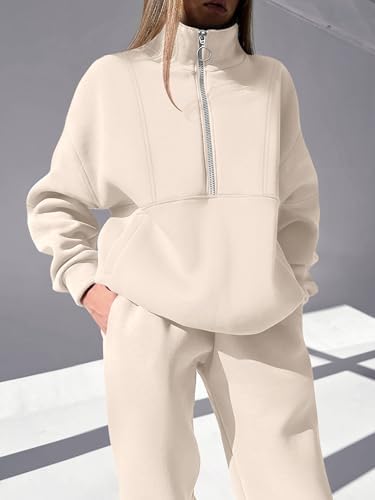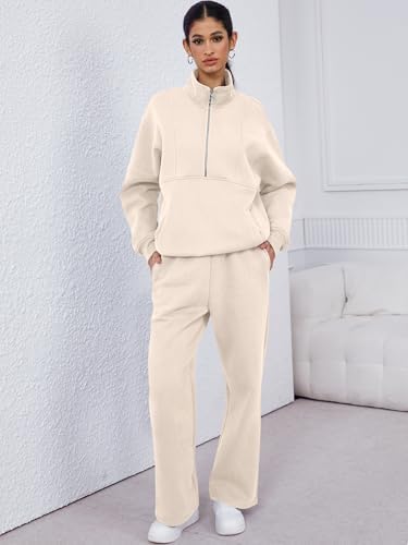 ANRABESS Women 2 Piece Outfits Sweatsuit Oversized Half Zip Sweatshirt Matching Wide Leg Sweatpant Lounge Set Fall Tracksuit