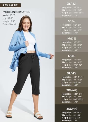 BALEAF Women's Swim Capris Pants 18" Knee Length Modest Swimsuits Quick Dry UPF 50+ Beach Bathing Suit Bottoms with Pockets