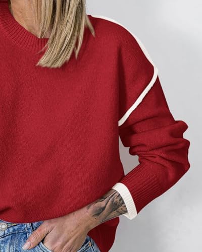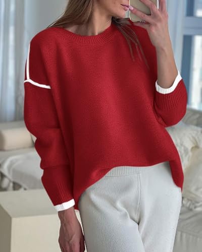 BTFBM Fall Sweaters for Women 2024 Trendy Casual Crew Neck Long Sleeve Loose Ribbed Knit Sweater Pullover Jumper Tops