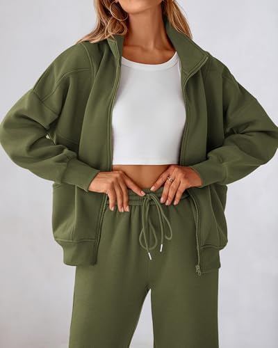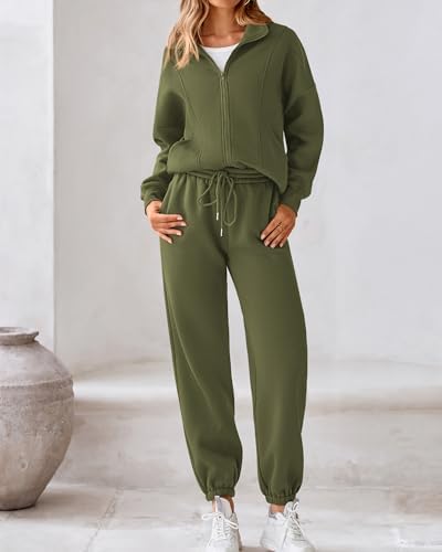 BTFBM Womens Sweatsuits 2 Piece Set 2024 Fleece Long Sleeve Zip Up Sweatshirt Sweatpants Winter Fall Outfits Jogger Sets