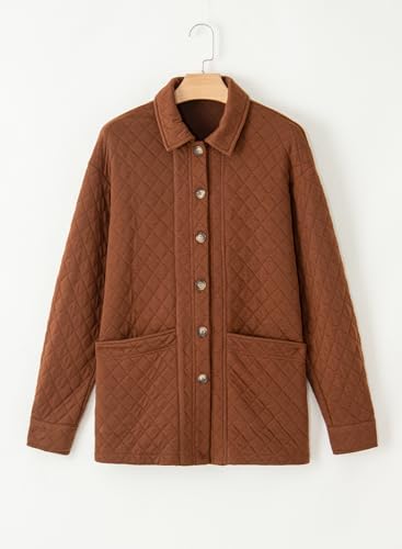 Dokotoo Casual Quilted Jackets for Women Button Down Collared Long Sleeve Shirts Fall Outfits Winter Coats with Pockets 2024