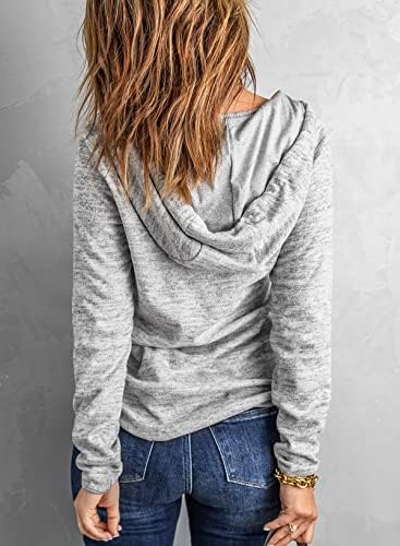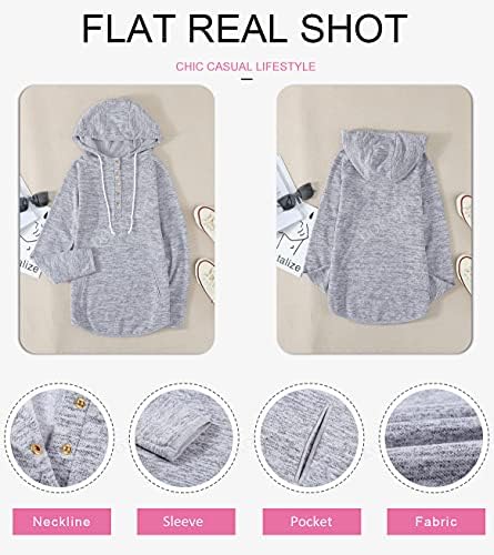Dokotoo Womens 2023 Fashion Fall Button Collar Drawstring Stitching Sweatshirts Hoodies Pullover