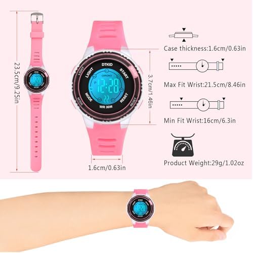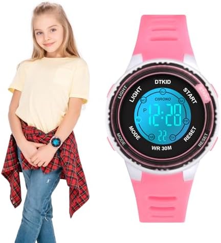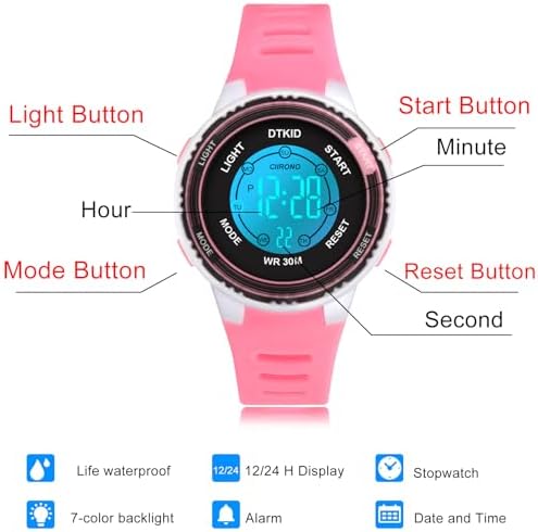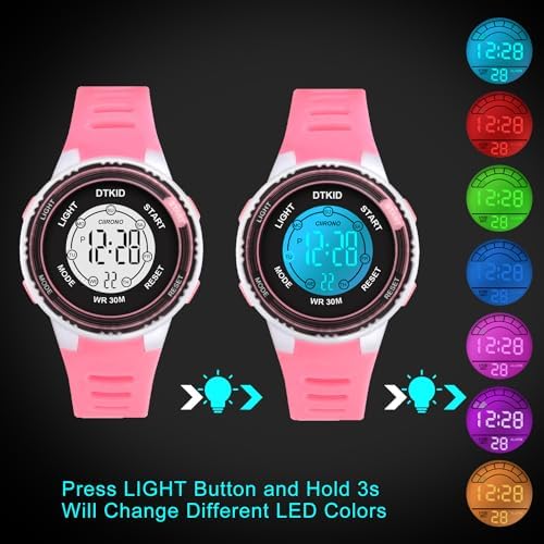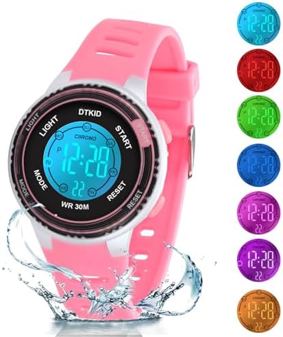 DTKID Digital kids Watch,waterproof 3ATM,Easy to Read,7 Color Lights,Time Teaching Watch for Boys,Soft Band Wrist Watch for Girls Boys