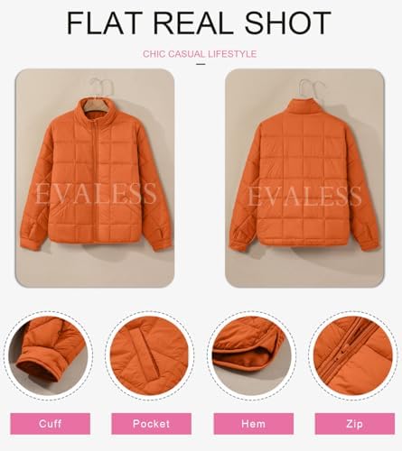 EVALESS Womens Quilted Puffer Jackets Lightweight Long Sleeve Zip Up Winter Coats Fashion 2024 Fall Outfits With Pockets