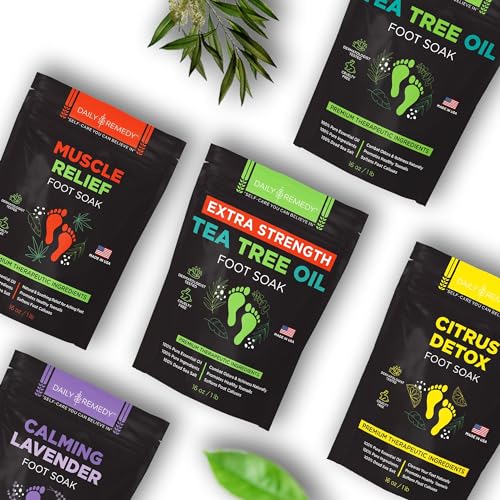 Tea Tree Oil Foot Soak EXTRA STRENGTH Tea Tree Oil Foot Soak 4 Pack Variety Foot Soaks - Tea Tree, Lavender, Citrus, & Muscle Relief 3in1 Professional Callus Gel Set Customer Reviews 4.6 out of 5 stars 25,537 4.5 out of 5 stars 11,978 4.6 out of 5 stars 1,139 4.8 out of 5 stars 13 Price $17.97 $19.97 $39.97 $19.97 What’s Included Tea Tree Oil Foot Soak EXTRA STRENGTH Tea Tree Oil Foot Soak 16 Ounce Tea Tree Oil Foot Soak + 16 Ounce Citrus Detox Foot Soak + 16 Ounce Muscle Relief Foot Soak + 16 Ounce Calming Lavender Foot Soak Foot Soak + Callus Gel + Foot File + Black Gloves Benefits Relieve aches & pains - eliminate odors - soften calluses - toenails, moisturizing, soothing, relaxation, calming, aromatherapy, achy muscles, athletes foot, callus remover, healthy toenails For athlete's foot, nail health, and calluses. Experience the natural power of tea tree oil and apple cider vinegar. Soothe aches & pains - break down calluses - remove impurities For Calluses, Dry Cracked Feet, Athlete's Foot 100% Cruelty-Free Made in the USA