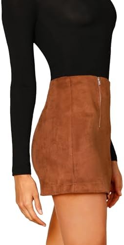 Floerns Women's High Waist Faux Suede Double Zipper Front Bodycon Mini Skirt
