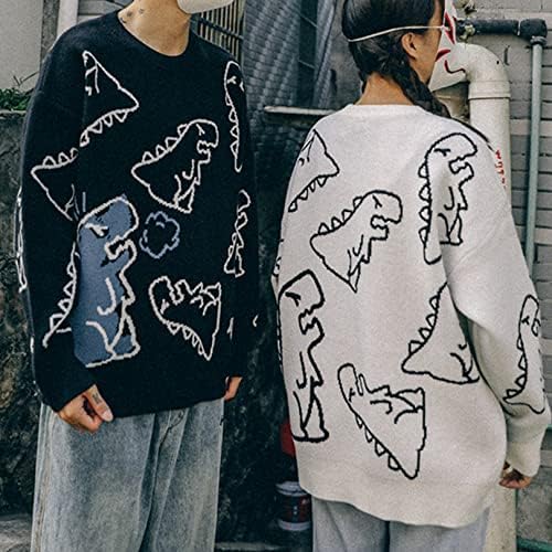 Flygo Women Dinosaur Knit Sweater Unisex Oversized Sweaters Casual Long Sleeve Pullover Jumper Knitwear