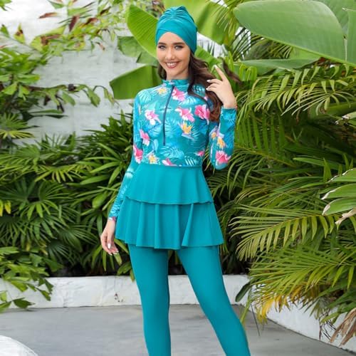 Modest Swimwear for Women, Burkinis for Muslim Women Ladies, Three Piece Islamic Full Body Swimming Shirts Tops Pants Hijab 3PCS Long Sleeve Rash Guard Set