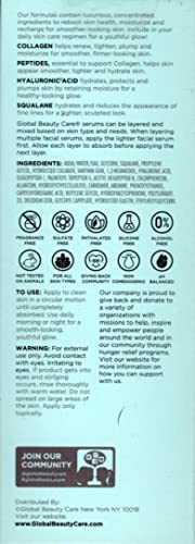 Global Beauty Care Smooth & Lift Collagen Facial Serum with Peptides, Hyaluronic Acid & Squalane 1fl oz 30ml For all Skin Types