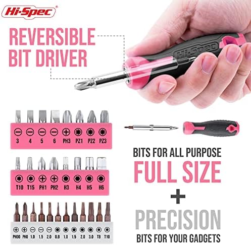 Hi-Spec 42pc Pink Home Tool Kit Set for Women. An All-Purpose Small Tool Box Kit